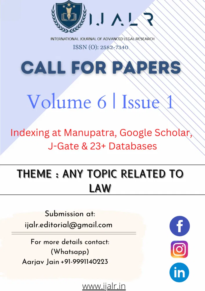 The International Journal of Advanced Legal Research (IJALR) is a globally recognized, peer-reviewed journal dedicated to fostering high-quality legal research. By providing a platform for students, educators, and professionals, the journal aims to bridge the gap between academic theory and practical legal insights.