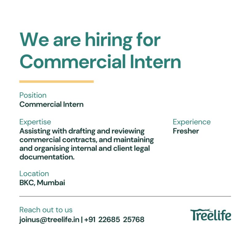 Interested? Write to us at joinus@treelife.in with subject line “Long term Commercial intern”.